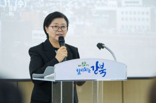 이순희 강북구청장이 '주거지정비 기본계획 공청회'에서 인사말을 전하고 있다. 강북구 제공. |