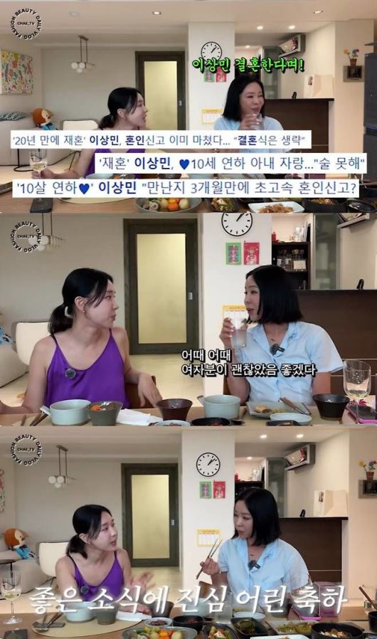 이혜영은 3일 유튜브 채널 '채정안TV'에서 "이상민 결혼한다며"라고 언급했다. 그룹 '샵' 출신 이지혜는 "JTBC '아는 형님' 피로연에 초대 받아서 다녀왔다"고 털어놨고, 이혜영은 "어떠냐. 여자분 괜찮았으면 좋겠다. 진짜 이왕이면 잘 살아야지"라고 했다. 이지혜는 "언니 진짜 너무 착하다"며 놀랐다.