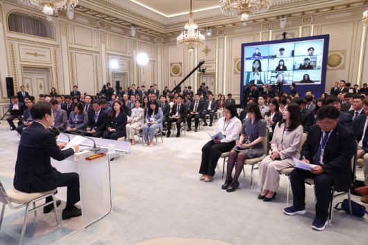 이례적으로 취임 30일 만에 열린 이재명 대통령의 첫 기자회견은 과거 대통령 기자회견과 비교할 때 형식이 크게 달라졌다.