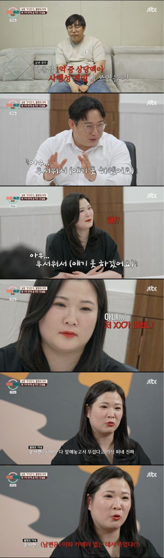 남편은 “그 이후에 SNS를 보면서 따라한 것도 있다”라고 설명했다. 아내는 빚의 대부분을 생활비로 썼다고 주장하기도. 이어 아내는 더 이상 숨기는 채무는 없다고 밝히며 불편한 심기를 보였다.