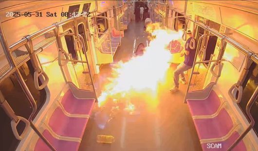 지난 달 31일 오전 8시 42분쯤 60대 남성 원 모 씨가 지하철 5호선 여의나루역과 마포역 간 터널 구간을 달리는 열차에 불을 지르고 있다. |