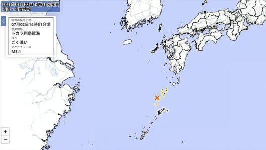 ▲ 2일 오후 2시 51분쯤 도카라 열도에서 발생한 규모 5.1 지진