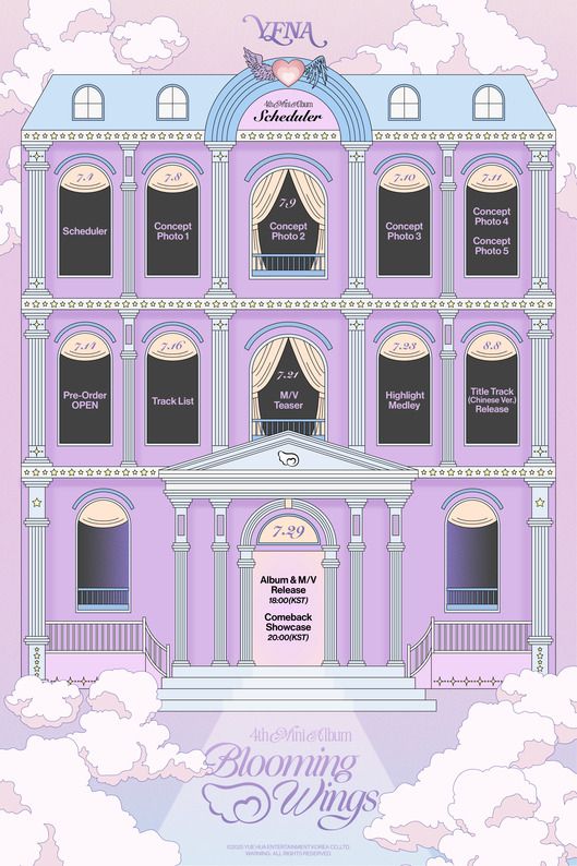 최예나는 4일 0시 공식 SNS를 통해 네 번째 미니앨범 'Blooming Wings(블루밍 윙스)'의 스케줄러 포스터를 공개했다.