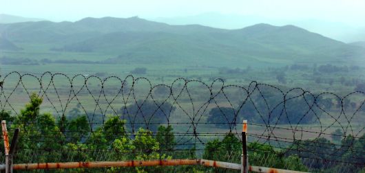 경기도 연천군 갈현리 부근 남방한계선 철책선 뒤로 보이는 DMZ(비무장지대). /오종찬 기자 |