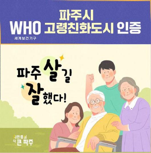 경기 파주시가 지난 6월 25일 세계보건기구(WHO)로부터 고령친화도시 국제 네트워크 가입 인증을 획득했다고 4일 밝혔다.