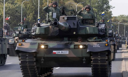 폴란드군 K-2 전차가 시가행진을 하고 있다. 세계일보 자료사진 |
