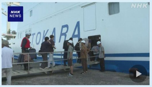 4일 일본 가고시마현 도시미무라 지진으로 아쿠세키섬 주민들이 가고시마로 가는 페리에 승선하고 있다/NHK |