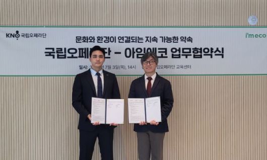 아임에코는 이번 협약을 통해 앞으로 1년간 국립오페라단의 정기 공연에 친환경 생수 제품 ‘고마운샘’과 ‘가벼운샘’을 협찬할 예정이다.