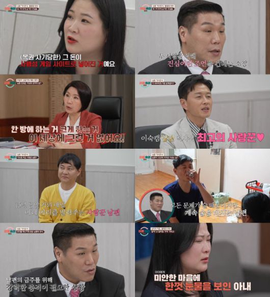 이어서 ‘팔랑귀 부부’의 남은 이야기와 솔루션 과정도 공개됐다. 가사조사에서는 아내가 과거 복권 당첨 번호를 알려주겠다는 사기범의 꼬임에 넘어가 사행성 게임도 한 적이 있다는 사실이 드러났다. 또한 시부모에 대한 욕설까지 한 것이 알려져 충격을 안겼다. 이에 서장훈은 “돈을 버는 데 다른 꼼수가 있는 게 아니다. 열심히 일하면 충분히 만회할 수 있다”라고 진심을 담아 충고했다. 이어진 부부 상담에서 이호선 상담가는 아내의 변화를 위해 “모르면 배우면 된다. 사업 같은 것은 생각하지 말자”라며 다양한 충고를 건넸고 아내 역시 자신의 실수와 잘못을 인정하며 눈물 흘렸다.