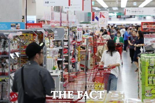 6월 소비자물가가 116.31로 전년 동월 대비 2.2% 상승한 가운데 서울 한 대형마트에서 시민들이 장을 보고 있다. /뉴시스 |