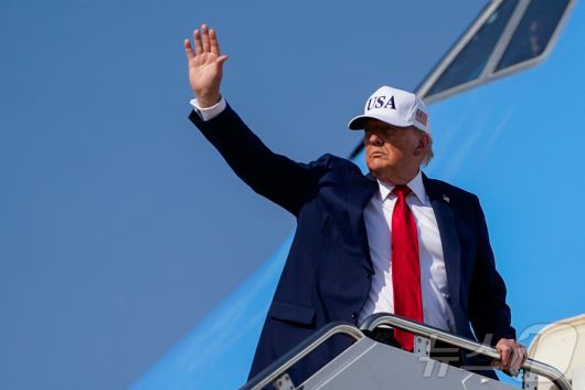 도널드 트럼프 미국 대통령이 3일(현지시간) 미국 메릴랜드주 앤드루스 합동 기지에서 아이오와로 출발하는 에어포스원에 탑승하면서 손을 들어 보이고 있다. 2025.07.03 ⓒ 로이터=뉴스1 ⓒ News1 류정민 특파원 |