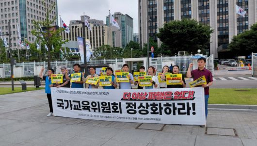또 “출범 당시부터 특정 성향 인사의 편중 임명, 교육주체 배제, 회의 비공개, 숙의 생략 등으로 운영 전반이 파행을 거듭했다”며 “최근에는 역사 왜곡 논란, 리박스쿨 등 극우단체와의 연계 의혹으로 국민적 신뢰를 더욱 실추시켰다”고 지적했다.