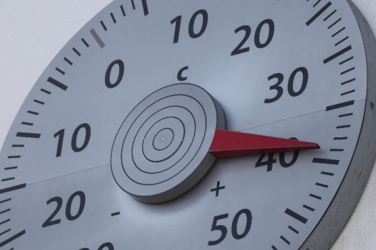 1일 유엔 기후변화협약(UNFCCC) 본부 벽에 설치된 거대한 온도계가 섭씨 39도의 기온을 보이고 있다. 연합뉴스 |