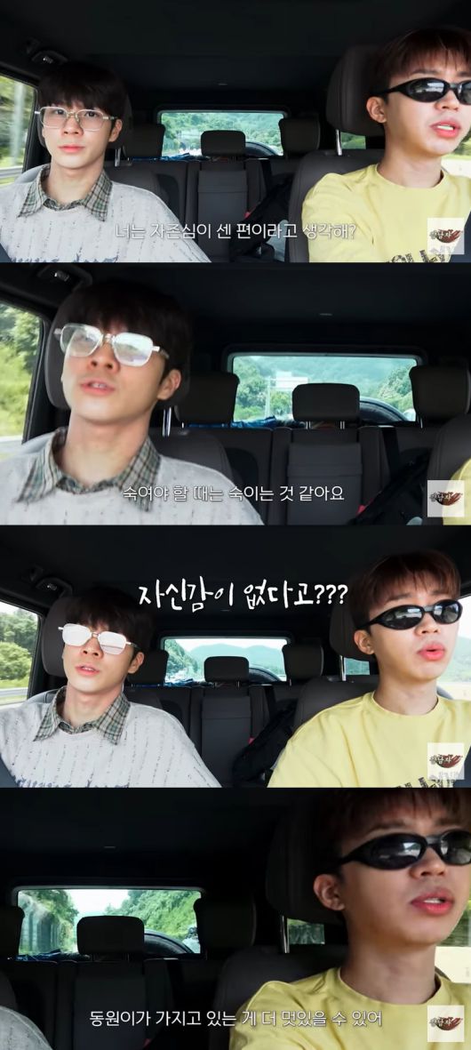 스스로 자존심이 세다고 생각하느냐는 임영웅의 질문에 정동원은 "자존심은 센 편이지만, 숙여야 할 땐 숙인다"고 답했다. 이어 자신감에 대한 질문에는 "요즘 잘난 분들이 너무 많아서 자신감은 없다"고 솔직하게 털어놨다.