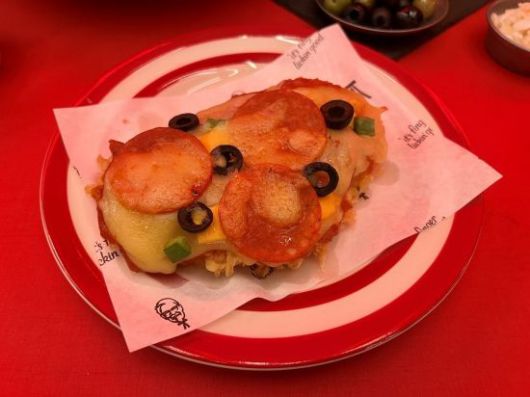 '켄치짜'는 바삭한 치킨 필렛(닭가슴살 튀김)을 피자 도우처럼 활용하고 그 위에 체다·모짜렐라 치즈, 토마토 소스, 페퍼로니, 양파·올리브·피망 등을 얹은 메뉴다.