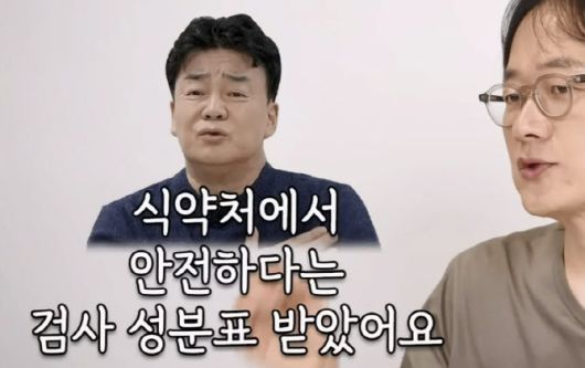 백종원 대표는 식약처 검사성분표가 있다고 발언했다. (사진=김재환 유튜브 캡처) |