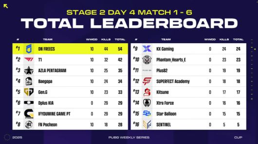 DN 프릭스가 'PUBG 위클리 시리즈(PWS): 컵' 넷째 날 처음으로 일간 1위를 차지하며 대회 후반으로 갈수록 점차 뒷심을 발휘하고 있다.