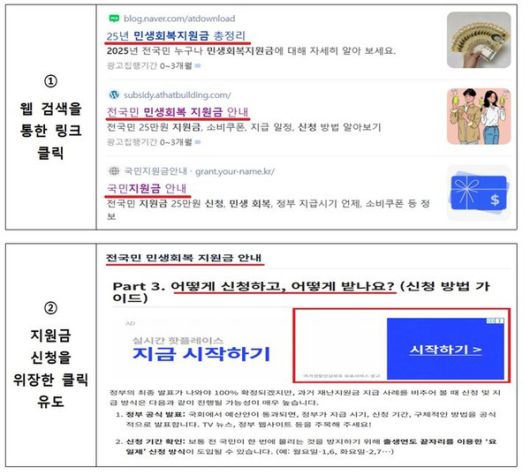 최근 민생회복지원금을 사칭한 유료 서비스에 가입시키는 사례가 나오고 있어 이용자 주의가 요구된다.