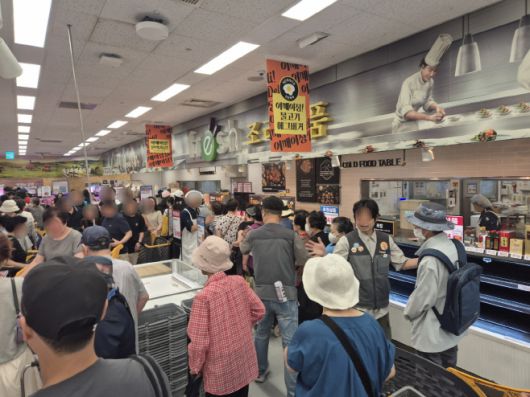 4일 오전 9시 30분 이마트 영등포점. 개점까지 30분 이상 남은 시간이었지만 벌써 줄이 20명 가까이 늘어서 있었다. 이날부터 사흘간 열리는 이마트 '고래잇 페스타'의 메인 상품인 '어메이징 완벽치킨'을 손에 넣기 위해서다. 가격은 단돈 3480원. 기존 6000원대 판매가의 절반 수준이다.