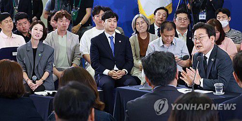 (대전=연합뉴스) 홍해인 기자 = 이재명 대통령이 4일 대전컨벤션센터에서 타운홀 미팅 형식으로 열린 '국민소통 행보 2탄, 충청의 마음을 듣다'에서 발언하고 있다. 2025.7.4