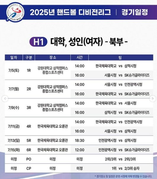 2025 핸드볼 디비전리그는 오는 5일 오후 2시, 한국체육대학교와 삼척시청의 경기로 시작된다.