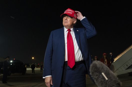 도널드 트럼프 미국 대통령이 4일 워싱턴에 도착해 기자들에게 이야기하고 있다. AP 연합뉴스 |