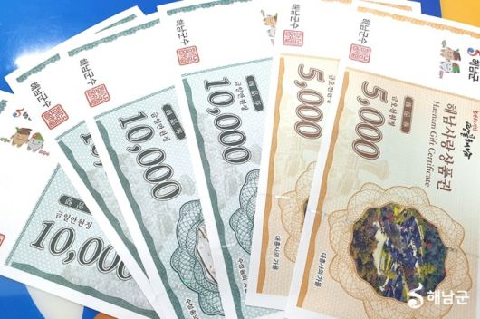 [헤럴드경제(해남)=김경민기자]해남군이 7월부터 해남사랑상품권을 10% 할인판매를 실시한다. 할인구매 한도는 1인당 70만원까지이다.