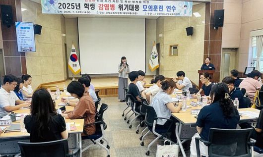 경북고령교육지원청(교육장 정태호)이 지난 3일, 군 보건소, 관내 초·중·고등학교 관계자 20여 명이 참석한 가운데 ‘2025년 학생 감염병 위기 대응 모의훈련 연수’를 실시하고 있다.사진=고령교육지원청(포인트경제) |