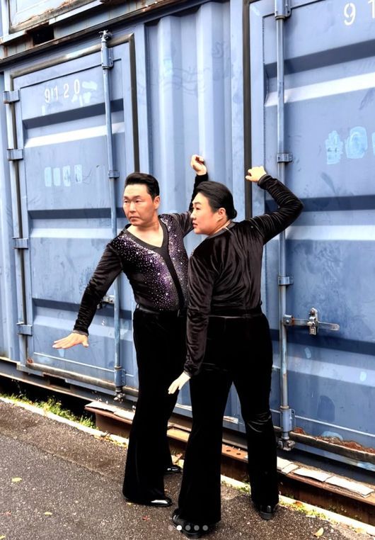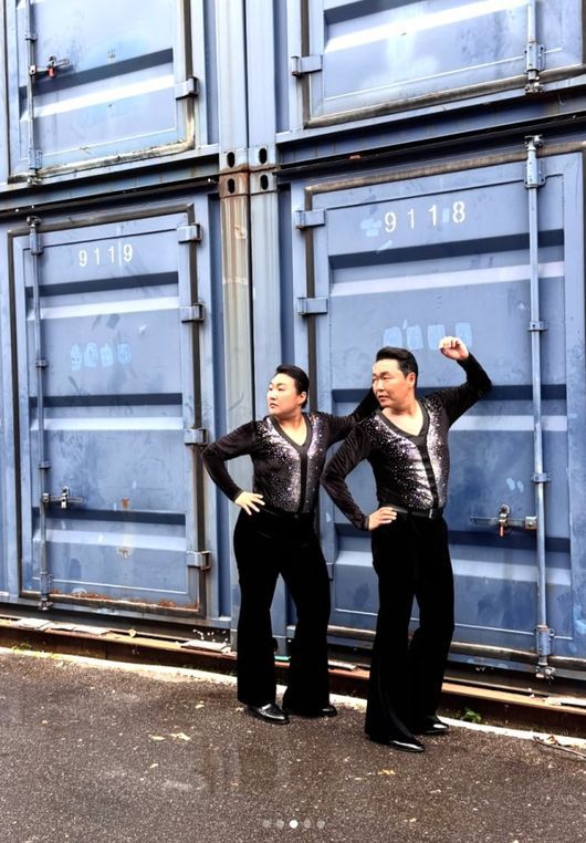 공개된 사진에는 똑같은 의상과 똑같은 헤어스타일을 하고 촬영 중인 싸이와 이수지의 모습이 담겨 있었다. 싸이와 이수지는 비슷한 포즈를 취하면서 진지하게 춤을 추고 촬영에 임하고 있었다. 똑같은 스타일링을 해서인지 평소보다 더 닮아 보이는 비주얼을 완성한 두 사람은 흡사 쌍둥이처럼 똑같은 외모였다.