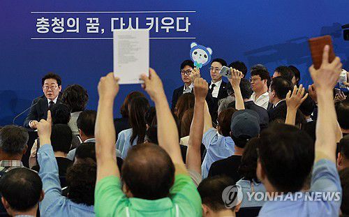 (대전=연합뉴스) 홍해인 기자 = 이재명 대통령이 4일 대전컨벤션센터에서 타운홀 미팅 형식으로 진행한 '국민소통 행보 2탄, 충청의 마음을 듣다' 간담회에서 시민들의 질문을 받고 있다. 2025.7.4