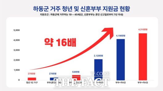 청년 1인 가구와 비교했을 때 자녀 3명 가구의 지원금은 약 16배에 달하는 수준이다.