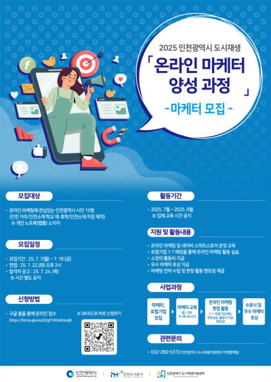 인천광역시 도시재생지원센터(센터장 박형균)는 원도심의 지역경제 활성화와 로컬기업의 디지털 전환을 지원하기 위한 ‘2025년 원도심 로컬기업 지원사업(온라인 마케터 양성사업)’을 이번 달부터 본격 추진한다고 4일 밝혔다.