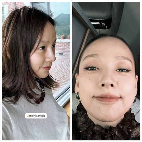 공개된 사진 속 이효리는 평창동 자택으로 보이는 마루 앞에서 자연광을 받으며 옆을 바라보고 있다. 반듯하게 넘겼던 올백머리는 풀렸고, 방송에서 화제가 됐던 얼굴 점도 대부분 사라진 모습이다.