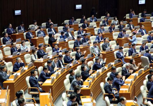 더불어민주당 의원들이 3일 서울 여의도 국회에서 열린 제426회 국회(임시회) 제4차 본회의에서 상법 일부개정법률안이 재석 272인, 찬성 220인, 반대 29인, 기권 23인으로 가결되자 박수치고 있다. 뉴시스 |