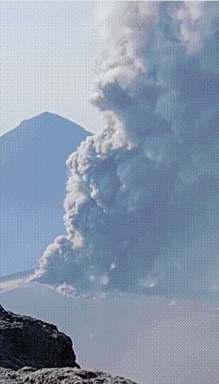X 등 소셜미디어에는 관련 사진과 영상이 잇달아 올라왔다. 이를 보면, 분화구에서 거대 연기가 분출됐다. 상공 비행기에서 촬영된 영상에도 검은색 연기가 인근 하늘을 뒤덮은 모습이 담겼다. 또 차량 등에 화산재가 쌓인 모습이 포착되기도 했다. 한 시민은 TBS에 “여객기가 날아가는 것 같은 ‘우우우우’ 하는 불길한 소리가 울려 퍼졌다”며 “거리는 떨어져 있었지만, 위압감이 느껴졌다. 두려움을 실감했다”고 했다.