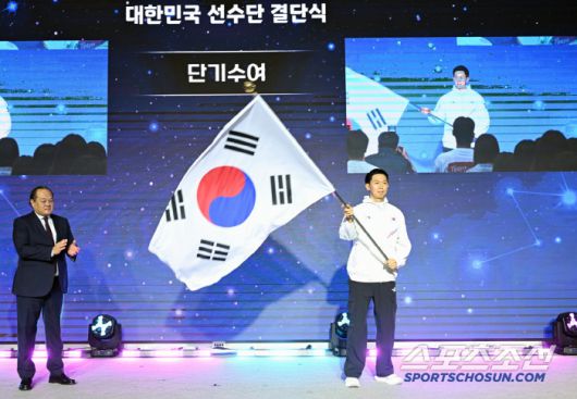 김지용 위원장으로부터 단기를 전달받은 장지석 선수단장은 "단장 중책을 맡겨주신 것에 감사 드린다"면서 "이번 대회의 주인공인 선수 여러분이 큰 노력을 해온 만큼 책임감과 자부심을 갖고 그동안 준비한 것을 마음껏 펼쳐달라"고 당부하면서 안전과 선전을 다짐했다.