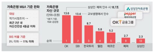 OK저축은행이 두 저축은행 인수에 성공하면 규제 완화 이후 인수가 이뤄지는 첫 사례가 된다. 저축은행업계에선 이번 거래가 구조조정 시장의 '시범 케이스'로 자리 잡을 경우 후속 M&A 수요도 점차 늘어날 수 있다는 관측이 나온다.