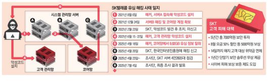 이와 함께 SK텔레콤은 알뜰폰을 포함한 전체 고객 2400만명을 대상으로 5000억원 규모의 별도 보상 프로그램을 가동한다. SK텔레콤 전체 고객을 대상으로 별도 신청 절차 없이 8월 통신 요금을 50% 할인할 예정이다. 8월에 사용한 통신 요금의 절반이 자동적으로 차감된다. 이 밖에 전 고객에게 매월 데이터 50GB를 추가 제공할 예정이다. 이 역시 별도 신청 없이 8월부터 연말까지 전 고객에게 자동 적용된다.
