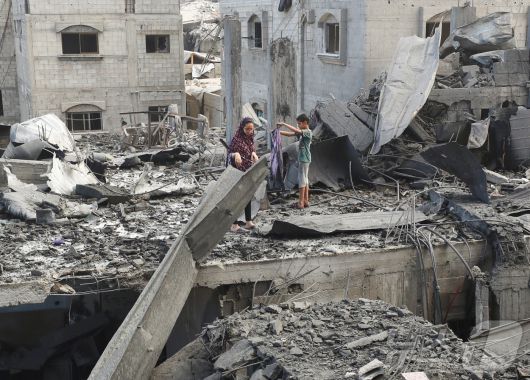 (가자지구 로이터=뉴스1) 양은하 기자 = 4일(현지시간) 이스라엘 국경과 인접한 가자지구 지역에 여러 건물이 폭격으로 무너진 모습. 2025.07.04. ⓒ 로이터=뉴스1 Copyright ⓒ 뉴스1. All rights reserved. 무단 전재 및 재배포, AI학습 이용 금지.