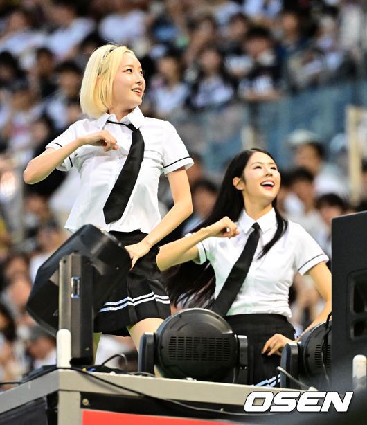 [OSEN=잠실, 지형준 기자] 4일 오후 서울 잠실구장에서 ‘2025 신한 SOL Bank KBO리그’ 두산 베어스와 KT 위즈의 경기가 열렸다. 두산은 잭로그, KT는 오원석이 선발로 나섰다. 두산 서현숙, 박기량이 응원 무대를 선보이고 있다. 2025.07.04 /jpnews@osen.co.kr