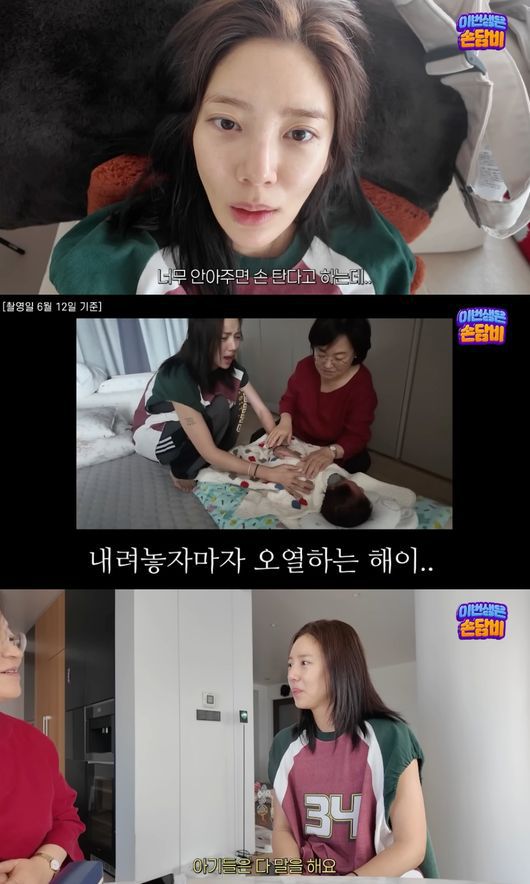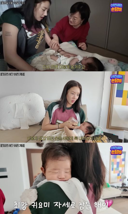 이에 손담비가 전문가의 조언을 듣고 눕히자마자 우는 해이를 차분하게 다독였다. 우는 아이의 모습을 보기만 해도 괴로워하는 손담비는 이내 진정되는 해이를 보며 울컥하듯 기특해 했다.