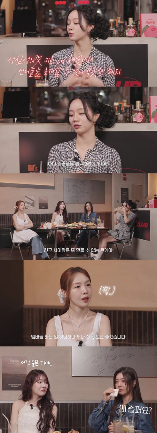 그러면서 멤버들에게 한 마디 하라고 하자 울컥하는 모습을 보였고 소진, 민아 역시 눈물을 보였다. 소진은 "가족과는 또 다르다"라고 이야기했고, 유라 역시 "친구 사이랑은 또 만들 수 없는 관계"라며 멤버들을 정의했다.