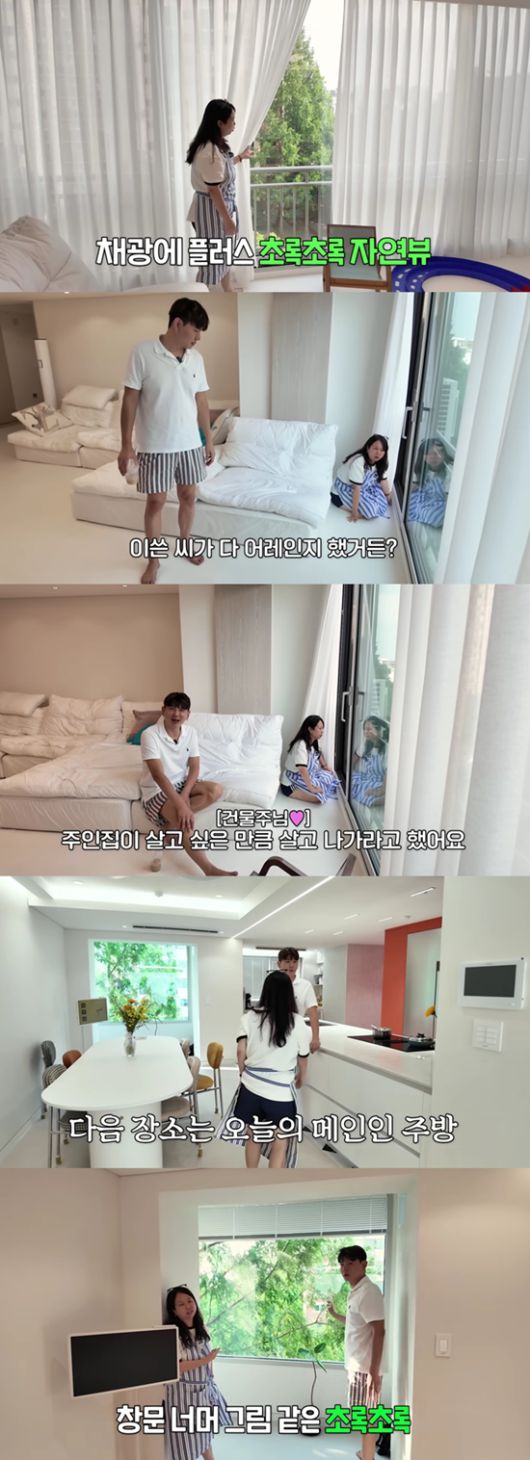 앞서 홍현희 제이쓴 부부는 1년 반 만에 압구정 집을 떠나 이사를 한다고 알린 바 있다. 영상에서 홍현희는 해가 한껏 들어오는 거실을 공개했다. 커튼을 걷자 푸른 숲이 보였다. 홍현희는 "초록색 보고 맑은 날에는 파란색 보니까 너무 좋다"고 설명했다.