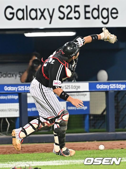 [OSEN=대구, 이석우 기자] 4일 대구삼성라이온즈파크에서 2025 신한 SOL 뱅크 KBO 리그 삼성 라이온즈와 LG 트윈스의 경기가 열렸다. 홈팀 삼성은 이승현이, 방문팀 LG는 송승기가 선발 출전했다. LG 트윈스 이주헌이 7회말 삼성 라이온즈 디아즈의 파울볼을 놓치고 있다. 2025.07.04 / foto0307@osen.co.kr