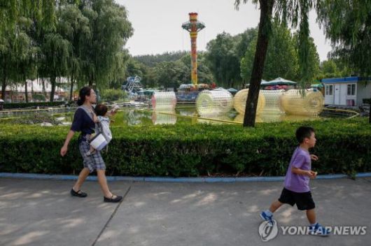 중국 베이징의 한 공원에서 가족들이 산책하고 있다. 연합뉴스 |