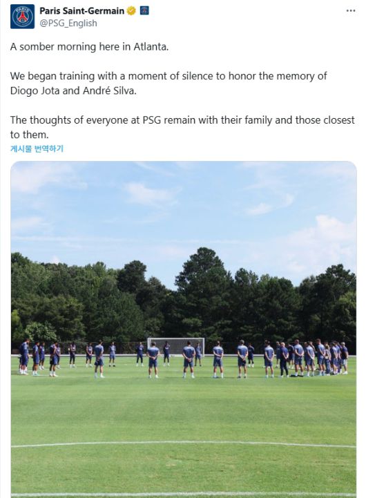 PSG도 추모 행렬에 동참했다. 구단 누리소통망(SNS)에 묵념하는 선수단 사진을 게재하며 "미국 애틀랜타의 오늘(4일) 아침은 우울했습니다. 우리는 조타와 안드레를 기리기 위해 묵념의 시간을 가진 뒤 훈련을 시작했습니다"라고 알렸다.
