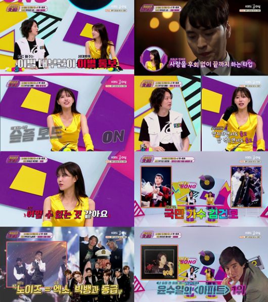 이날 10위는 이별의 아픔을 담은 US의 '지금 이대로(1995)', 9위는 실연당한 소녀가 달에게 한탄하는 내용이라는 보아의 'No.1'이 차지했다. 가사를 본 김희철이 "원하지 않는데 헤어져야 하는 상황에 맞닥트려진 적 있냐"고 묻자, 이미주는 "너무 많지 않나"라며, "나는 거의 차인다. 먼저 이야기 안 한다", "사랑을 끝까지 해서 그 사람들이 날 좀 질려한다"고 답했다.