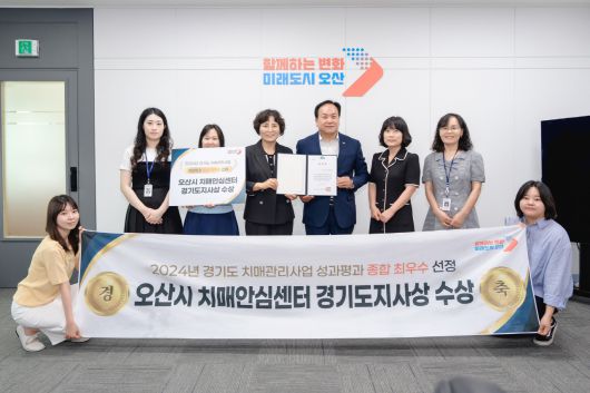 오산시 치매안심센터는 지난 7월 1일, 화성시 롤링힐스 호텔에서 열린 '2025년 경기도 치매안심센터 연찬회'에서 2024년 치매관리사업 성과평가 '종합 최우수상'을 수상했다고 밝혔다.