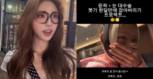 영상 속 최준희는 퉁퉁 부은 얼굴에 붕대를 감고 있는 모습이다. 성형수술을 했다고 알리며 "윤곽+눈 대수술, 부기 한 달 만에 잡아버리기 프로젝트. 유튜브 곧 큰 거 옵니다"라는 글을 덧붙였다.