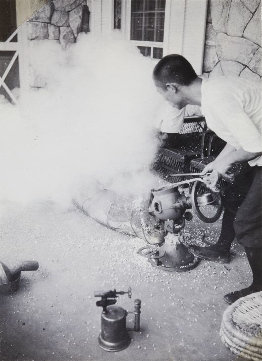 1938년 스코틀랜드 선교사 이언 모리슨이 중국 북대하에서 촬영한 뻥튀기 기계. 현대 한국 뻥튀기 기계와 유사하다. /브리스톨대 중국역사사진컬렉션 |